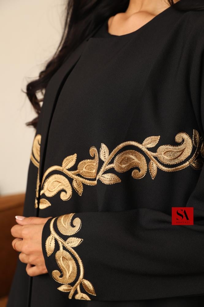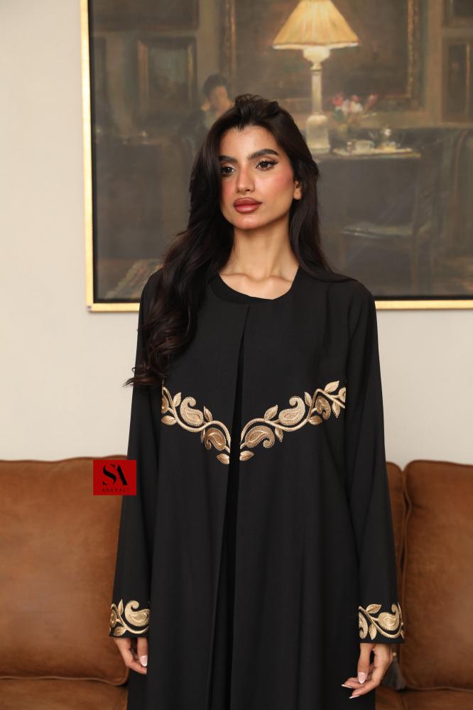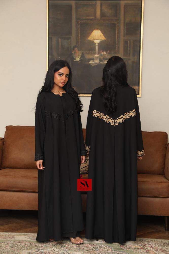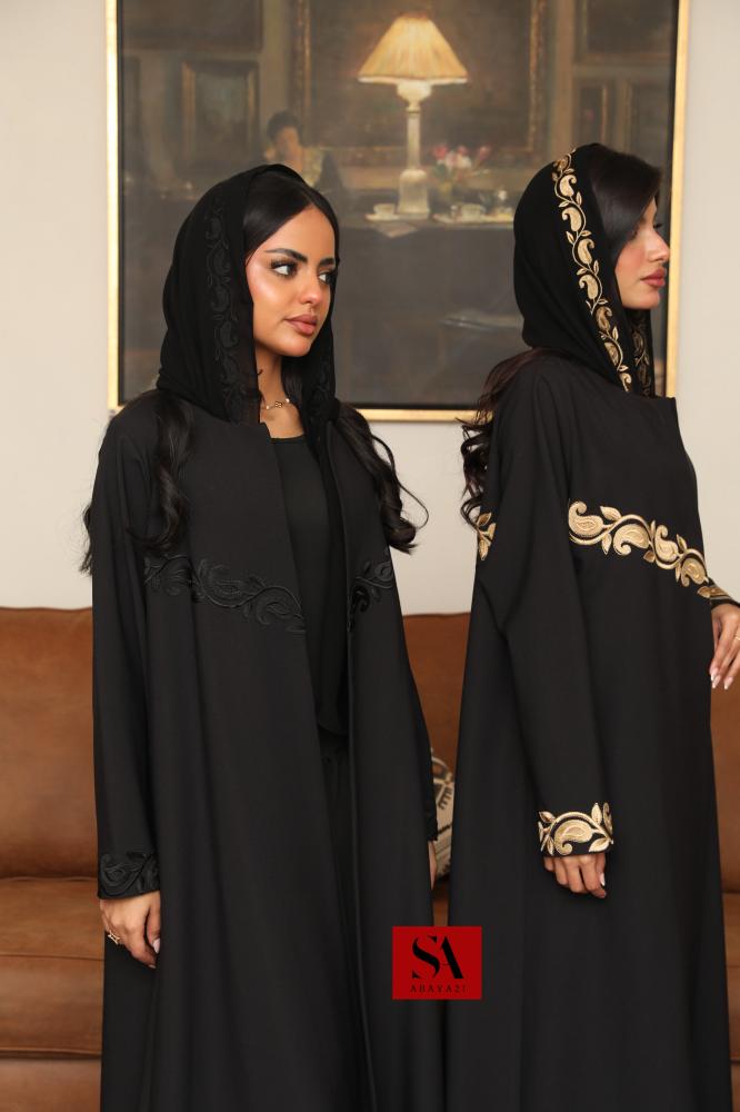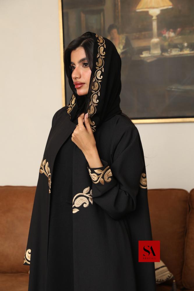 واقتني عباية عملية بالكريب الاسود والتطريز الخاص بSA بالاظافة الى طرحة متناسقه مع العبايه