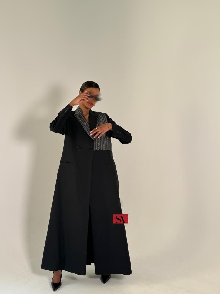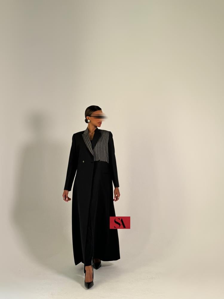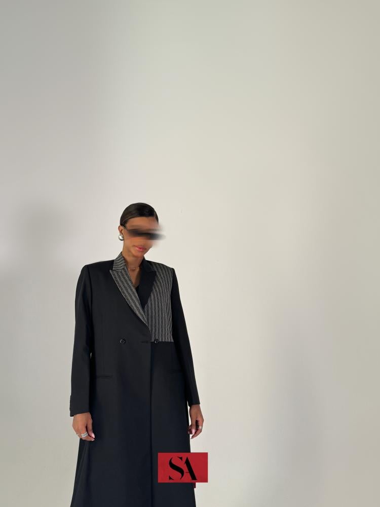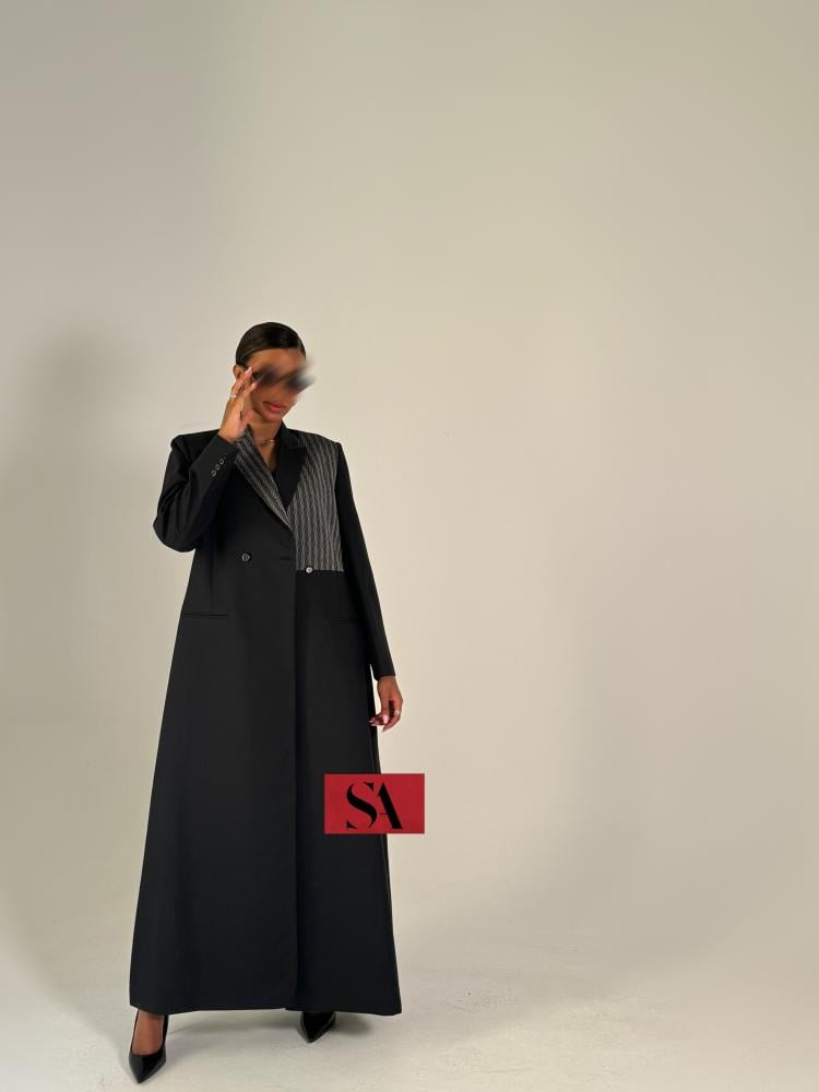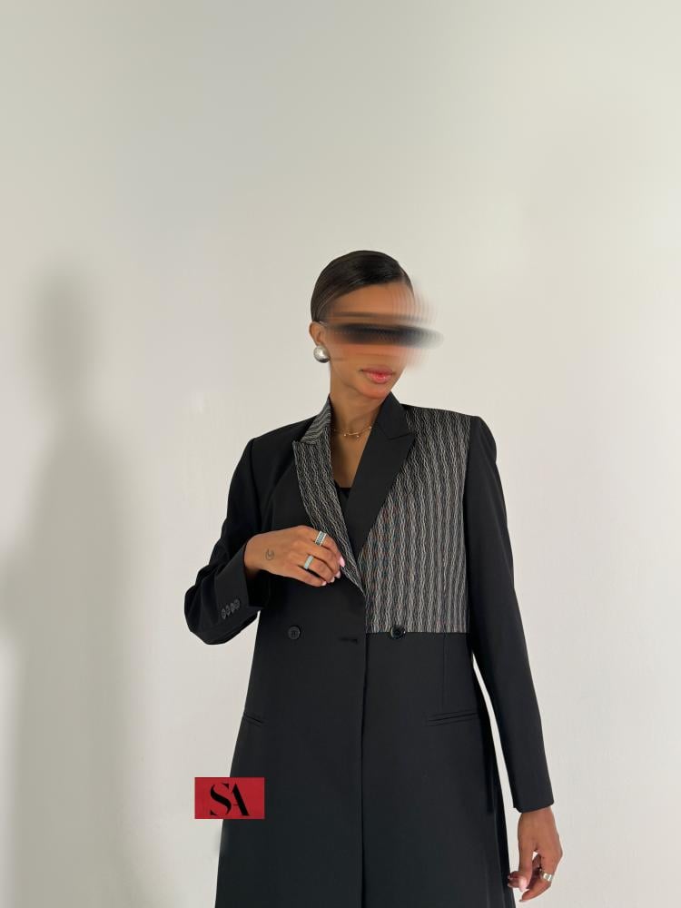 القماش المستخدم كتان صيفي مع تداخلات باللون الرمادي مبطن بالكامل من الداخل ويحتوي ايضاً على اسفنج اكتاف مخفي لاطلاله انيقه ومميزه ..✨