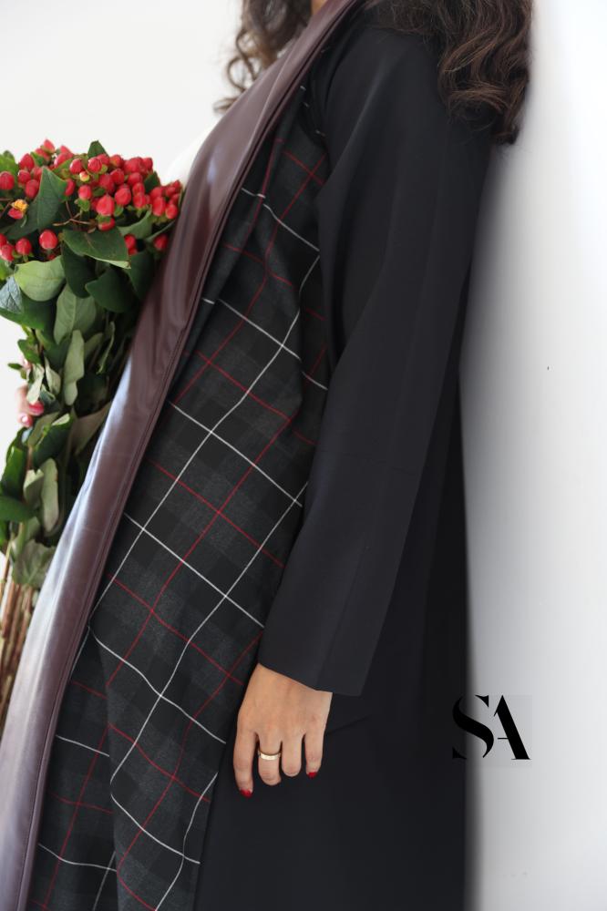 عباية شتويه من ثلاث اقمشه ( الكريب الساده والكريب الكاروهات والجلد )