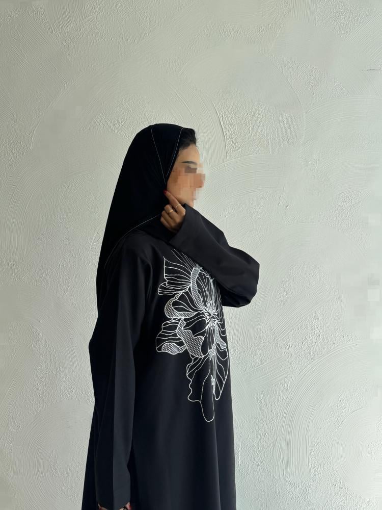 تطريز ورد أبيض ناعم يتداخل بتناغم ، ليمنحك لمسة أنثوية تنبض بالجمال والتفرّد.