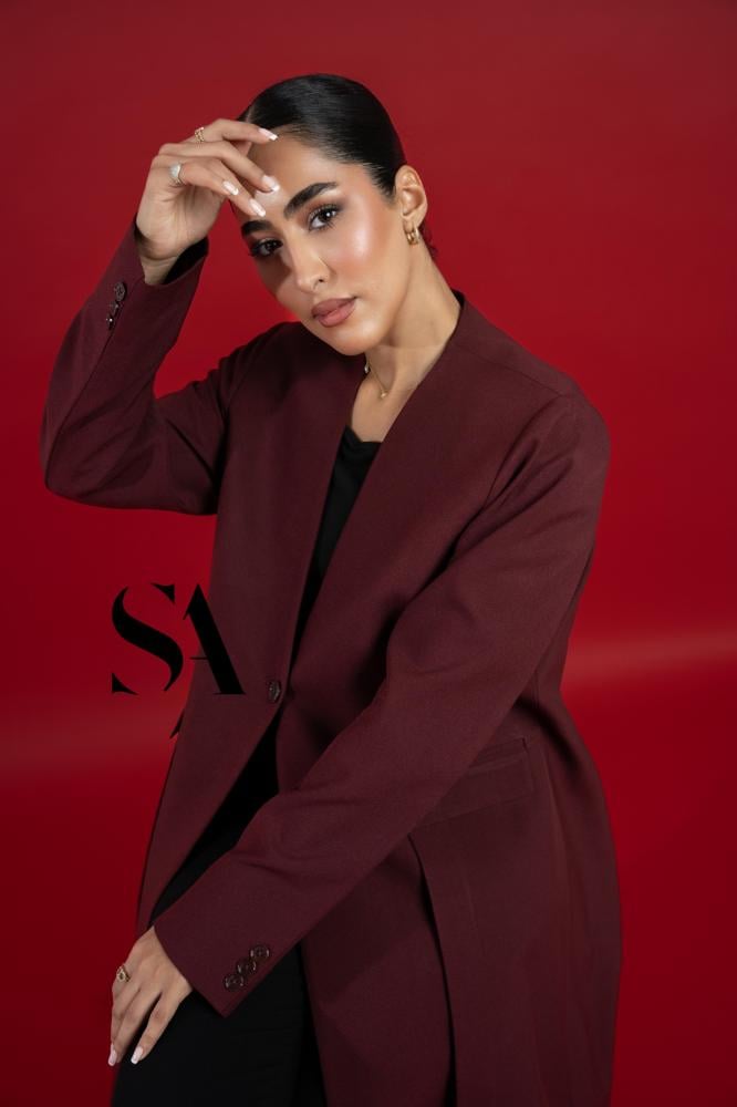 بليزر باللون البرغندي مع طرحة ساده ..✨♥️